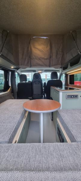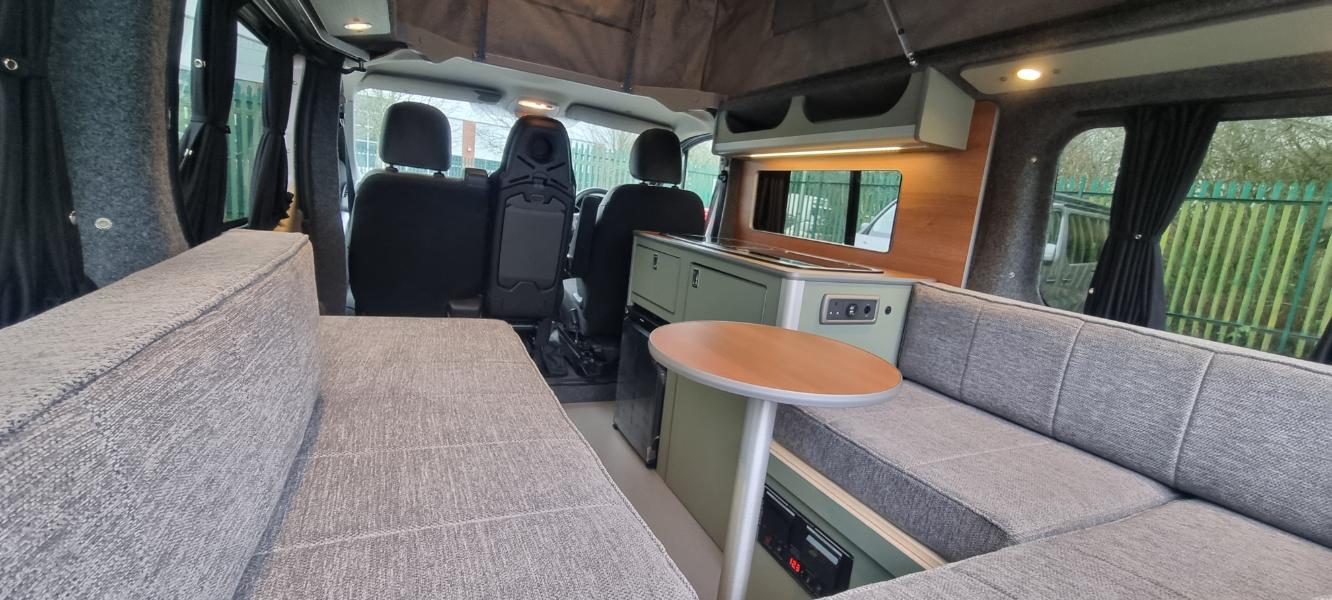All of our conversions come with a TUV approved poptop & M1 tested Rock & Roll bed, a full-length side furniture kit, 12v / 230v electrical system with DC-DC and 230v chargers. There are lots of colour options to choose from and many different upgrades to suit your own individual requirements.