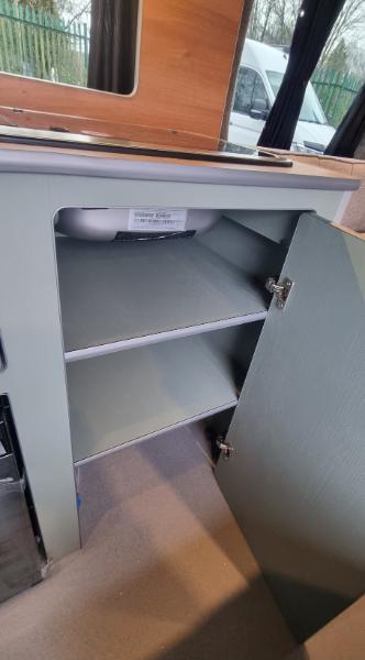 This van has had a fresh service and comes with a 12-month conversion warranty, so you can buy with peace of mind. The conversion is almost finished and will be ready for collection in early January 2026. The external images show the current van, and the internal images are a visual representation of the final conversion, with the interior soon to be finished in the vibrant Reed Green colour.